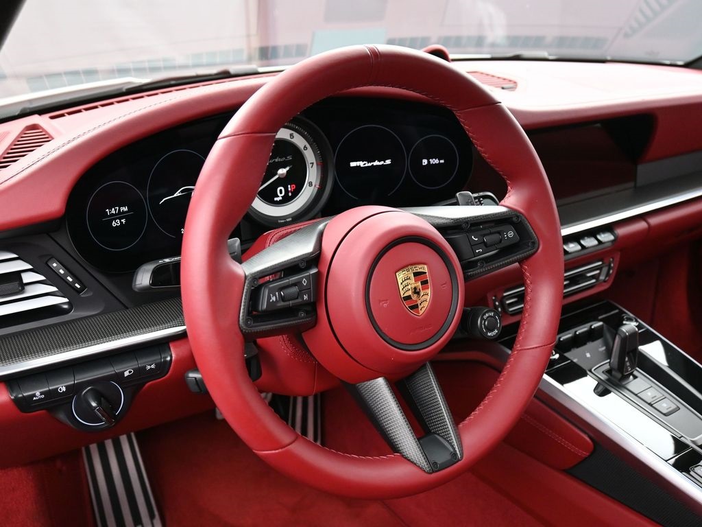 Recent Arrival! Thank you for your interest in another Manhattan Motorcars Pre Owned vehicle!2023 Porsche 911 Turbo S-Leather Interior in Bordeaux Red with Chalk Stitching-Carrara White Metallic-Carbon Fiber Roof-Exterior Mirror Upper Housing in Carbon Fiber and Lower Trim/Base in High Gloss Black-Window Trim in High Gloss Black-Rear Side Air Intakes in High Gloss Black-Under Door Puddle Light Projectors-Model Designation on Doors in Red-Motorsport Stripe Decal on Top in Red-Engine Compartment Cover in Titanium Grey-"PORSCHE" Logo on Rear in High Gloss Black-Model Designation on Rear in High Gloss Black-Exclusive Design Fuel Cap-Rear Lid Grille Vertical Slat Inlays in Exterior Color-PASM Sport Suspension (Lowered 10mm)-Front Axle Lift System-Sport Exhaust System incl. Tailpipes in Black-Power Steering Plus-Porsche Ceramic Composite Brakes (PCCB) with Calipers in High Gloss Black-Ionizer-Ambient Lighting-Ventilated Seats (Front)-Storage Package-Smoking Package-Seat Belts in Bordeaux Red-Central Tachometer in White-Sport Chrono Stopwatch Dial in White-Upper Interior Mirror Panel in Leather - Bordeaux Red-Fuse Box Covers in Leather - Bordeaux Red-Center Console Lid with Porsche Crest-Steering Column Casing in Leather i.c.w. Memory Package-Air Vent Surround in Leather and Air Vent Slats Painted - Bordeaux Red-Inner Door-Sill Guards in Leather - Bordeaux Red-Sport Seats Plus Backrest Shells in Leather with Matte Carbon Fiber Inlay-Vehicle Keys Painted incl. One Key Pouch in Race-Tex - Bordeaux Red-Heated GT Sport Steering Wheel with Trim in Matte Carbon Fiber-Door-Sill Guards in Matte Carbon Fiber, Illuminated-PDK Gear Selector in Aluminum-Pedals and Footrest in Aluminum-Burmester High-End Surround Sound System-LED-Matrix Design Headlights in Black incl. Porsche Dynamic Light System Plus (PDLS+)-Exclusive Design Taillights-Surround View-Lane Change Assist (LCA)ABS brakes, Alloy wheels, Electronic Stability Control, Front dual zone A/C, Heated door mirrors, Heated front seats, Illuminated entry, Low tire pressure warning, Navigation System, Porsche Communication Management, Remote keyless entry, Traction control.Clean CARFAX. Odometer is 4408 miles below market average!Porsche Approved Certified Pre-Owned Details: * Limited Warranty: 24 Month/Unlimited Mile beginning after new car warranty expires or from certified purchase date * Multipoint Point Inspection * Vehicle History * Includes Trip Interruption reimbursement * Roadside Assistance * Transferable Warranty * Warranty Deductible: $0