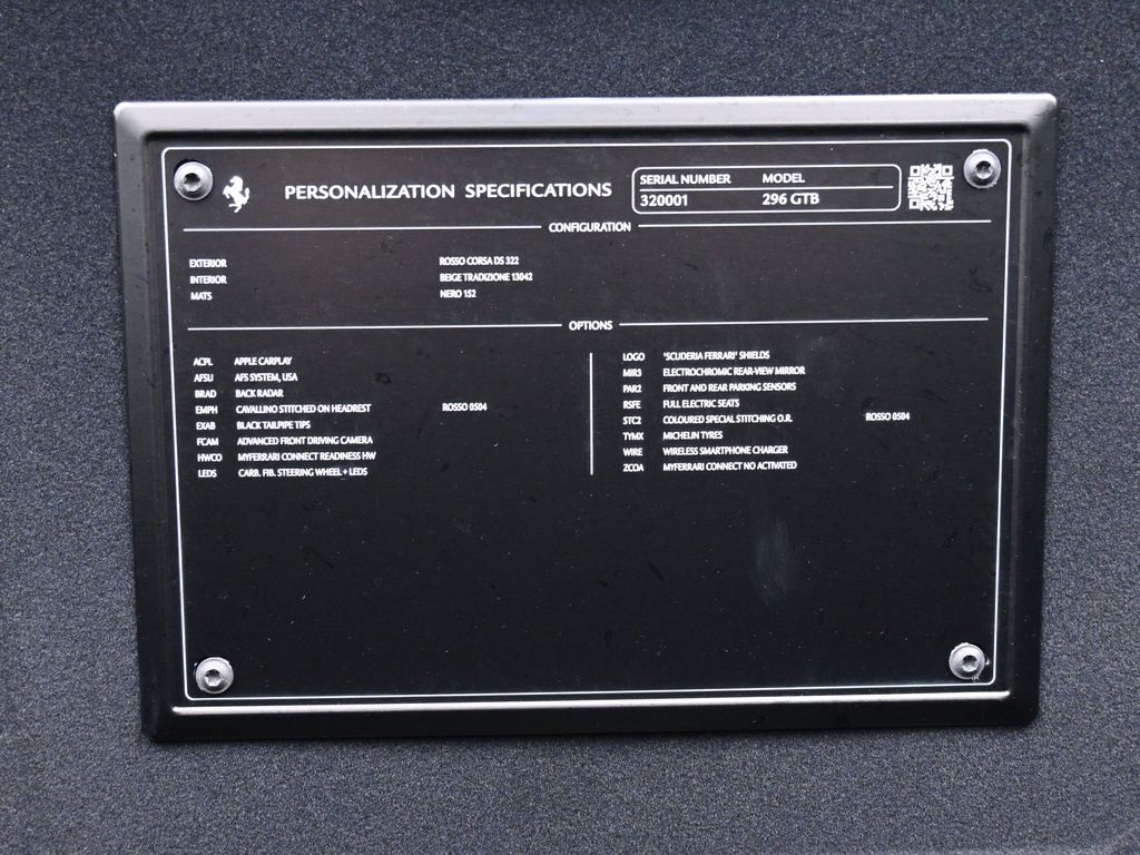 Recent Arrival! Thank you for your interest in another Manhattan Motorcars Pre Owned vehicle!2025 Ferrari 296 GTB Base-Rosso Corsa DS 322 / Beige Tradizione 13042 / Nero 152 Mats-Full Front Nose PPF + Side View Mirrors PPF-Back Radar-Cavallino Stitched on Headrest Rosso 0504-Black Tailpipe Tips-Advanced Front Driving Camera-Carb Fib Steering Wheel + LEDS-Scuderia Ferrari Shields-Electrochromic Rear View Mirror-Full electric seats-Coloured Special Stitching O.R. Rosso 0504-Serial Number 320001-Michelin Pilot Super Sport245/35 ZR20305/35 ZR20Clean CARFAX 1-Owner7 Year Genuine Maintenance Odometer is 937 miles below market average!