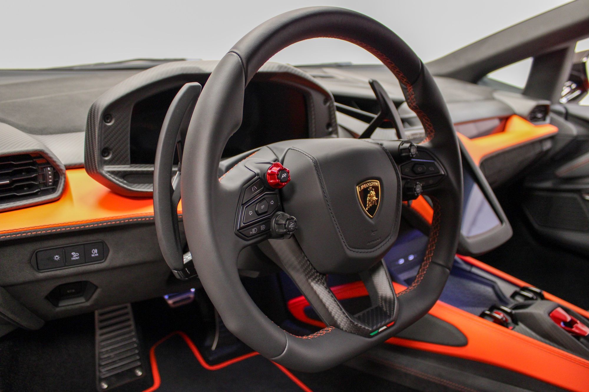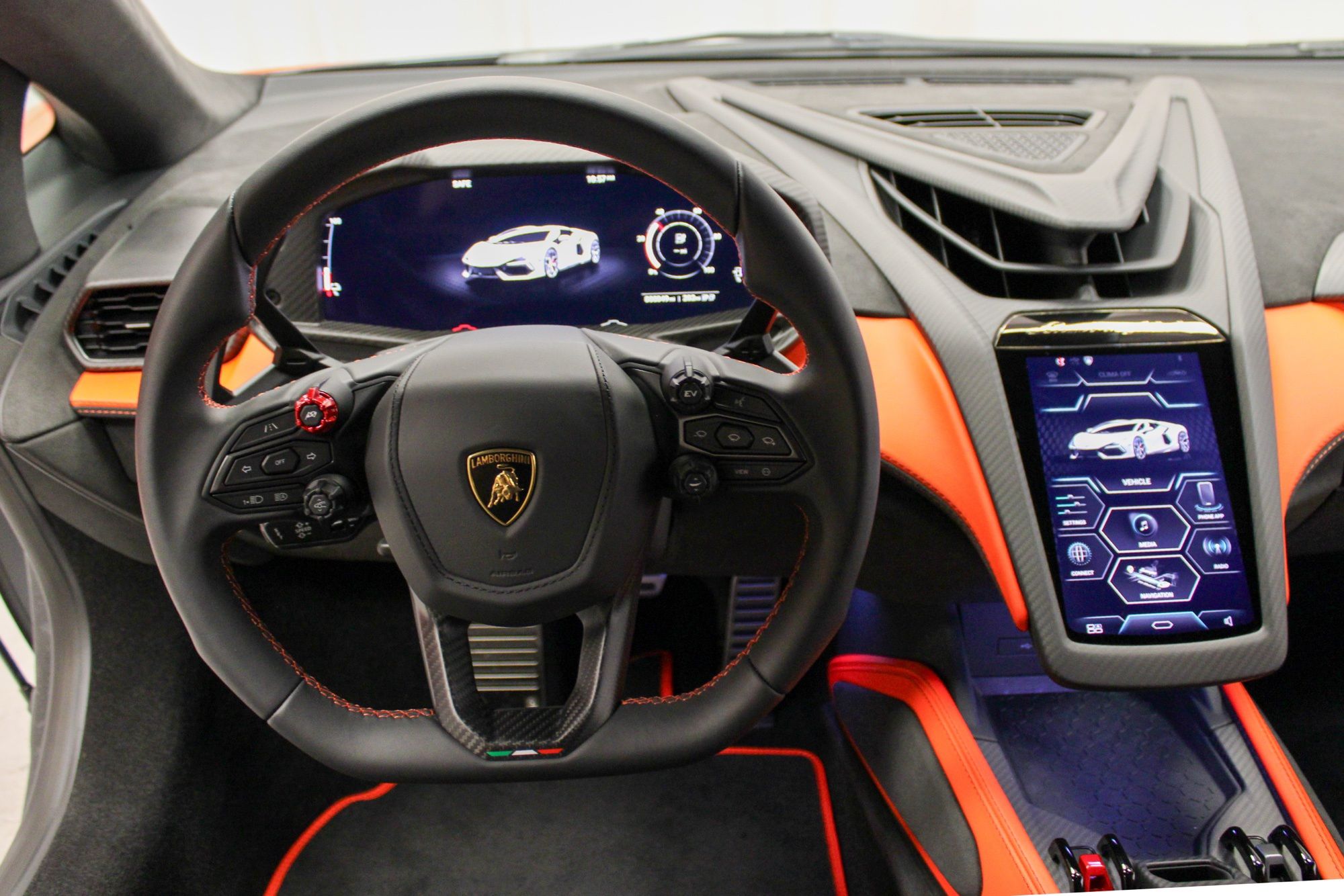 2025 Lamborghini RevueltoArancio Xanto ExteriorNero Ade & Arancio Dryope$798,631 MSRPThis vehicle is equipped with the following cost options:Stitching Inverted stitchingArancio Xanto PaintSurround Assistance PackFull High Assistant PackageParking PackNero Lucido CCB brake CalipersRims Altanero Shiny Black (21"/22" Sonus faber High End Sound System CONTRAST COLOR Trim Lower exterior carbon package - shiny Upper exterior carbon package - shiny Fully electric and heated seats Floor mats with leather borderAmbient Light RGB lights Passenger Display Smartphone interface and Connected Wheel cap in matt carbon Rim bolts in Titanium Kickplates in carbon matt with backlit Exhaust Tailpipes in Matt Black Embroidered Lamborghini Logo on Garage door opener Central Armrest Door Panel Floor Mats Lower Dashboard Seats Tunnel and Console Ad Personam Custom Request for Interior