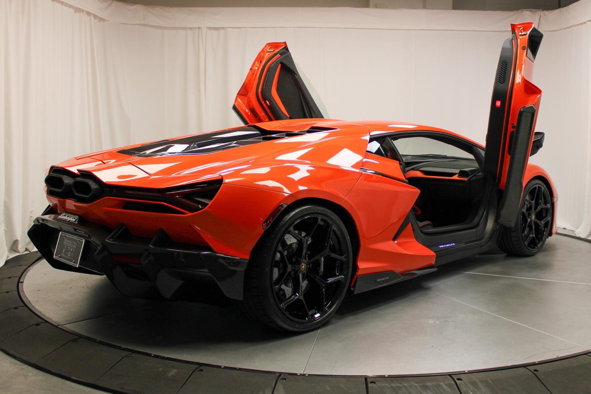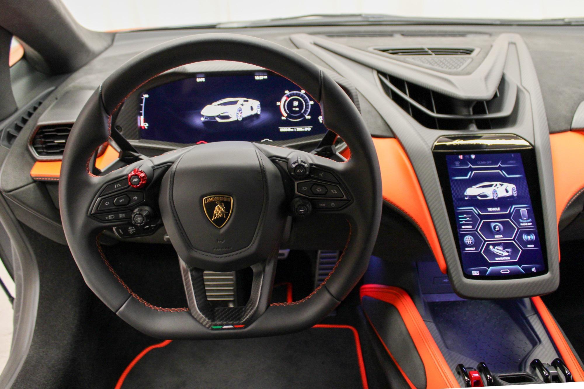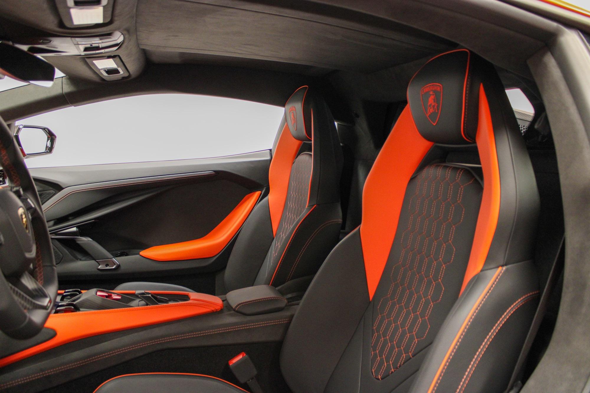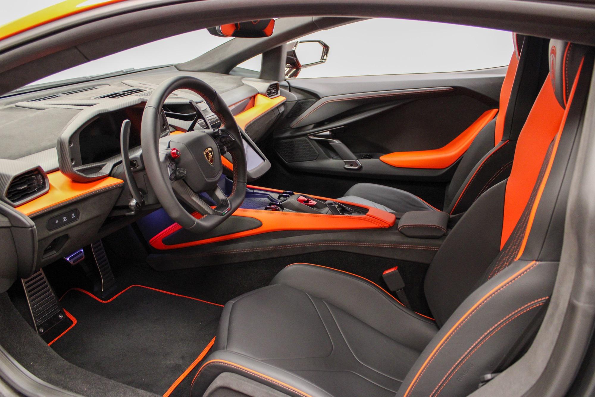 2025 Lamborghini RevueltoArancio Xanto ExteriorNero Ade & Arancio Dryope$798,631 MSRPThis vehicle is equipped with the following cost options:Stitching Inverted stitchingArancio Xanto PaintSurround Assistance PackFull High Assistant PackageParking PackNero Lucido CCB brake CalipersRims Altanero Shiny Black (21""/22"" Sonus faber High End Sound System CONTRAST COLOR Trim Lower exterior carbon package - shiny Upper exterior carbon package - shiny Fully electric and heated seats Floor mats with leather borderAmbient Light RGB lights Passenger Display Smartphone interface and Connected Wheel cap in matt carbon Rim bolts in Titanium Kickplates in carbon matt with backlit Exhaust Tailpipes in Matt Black Embroidered Lamborghini Logo on Garage door opener Central Armrest Door Panel Floor Mats Lower Dashboard Seats Tunnel and Console Ad Personam Custom Request for Interior