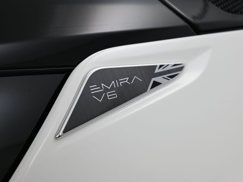 2025 Lotus Emira V6-Mist White / Red Leather-6 Speed Manual Transmission-Sport Suspension-Exterior Black Pack-Red Brake Calipers-20 inch V Spoke Diamond Cut Silver and Black Forged Wheels-Black Leather Trimmed Steering Wheel-Black Alcantara Headliner-Sport Pedals-Premium Carper Floor Mats-Black and Silver Nose Badge and Center Caps-KEF Premium Audio-Michelin Pilot Sport Cup 2
