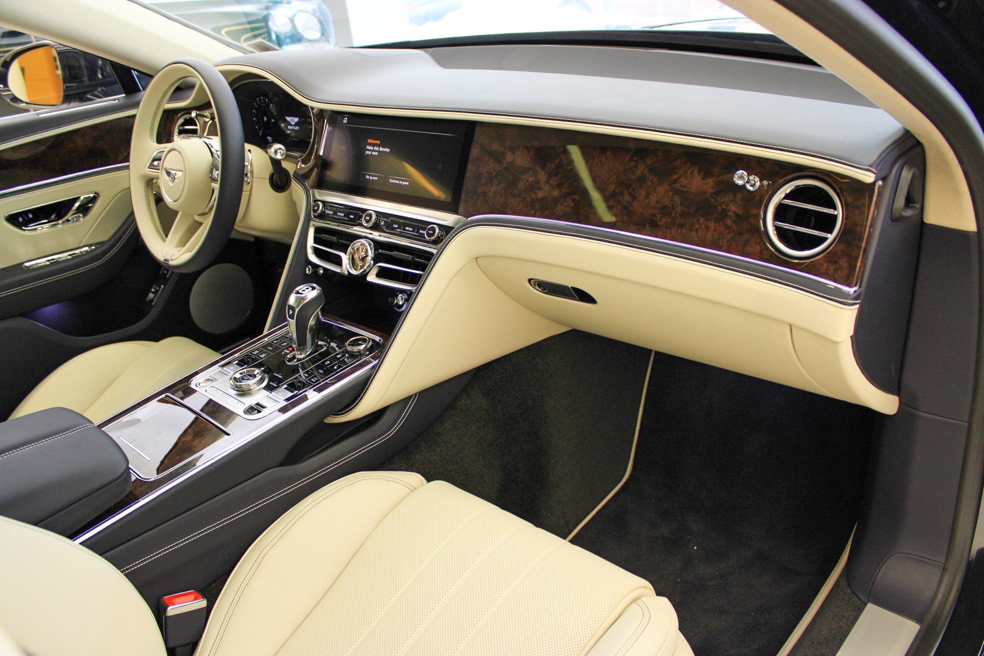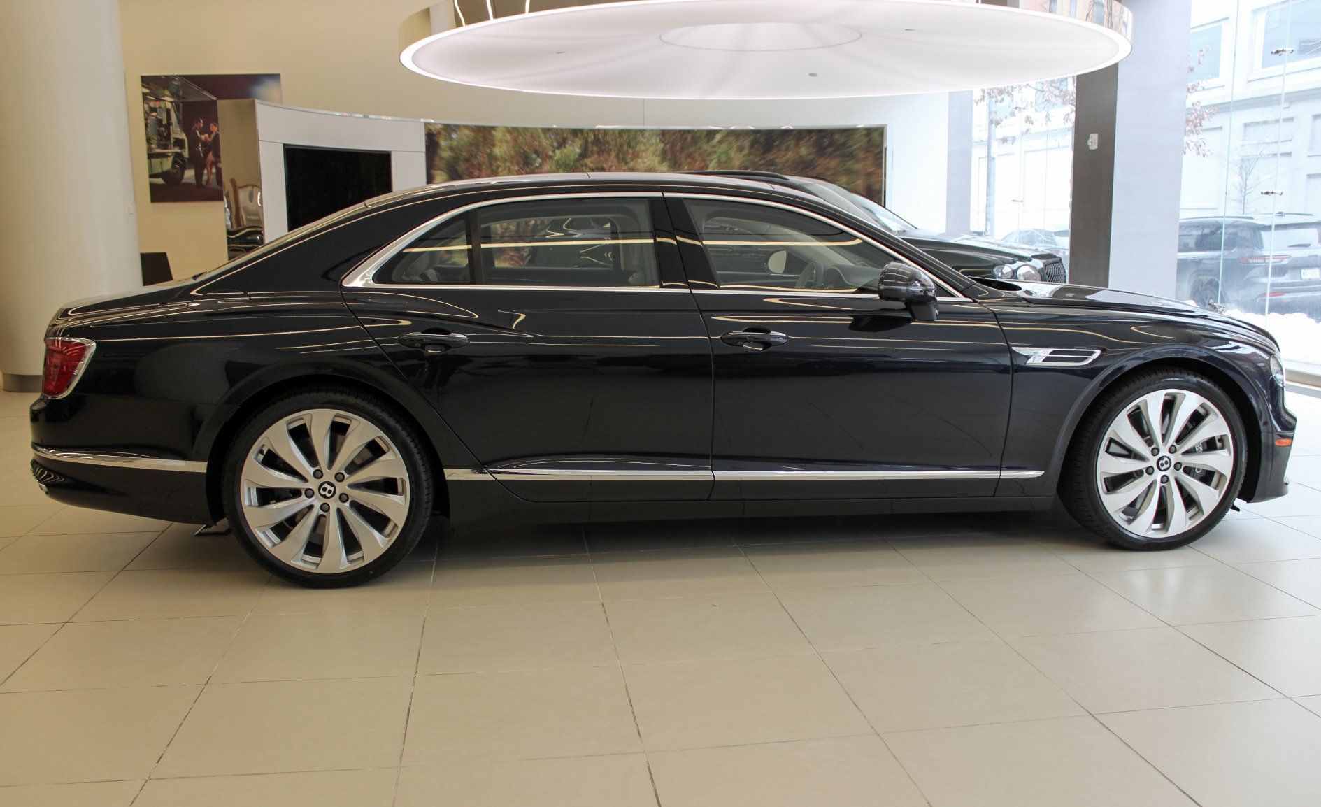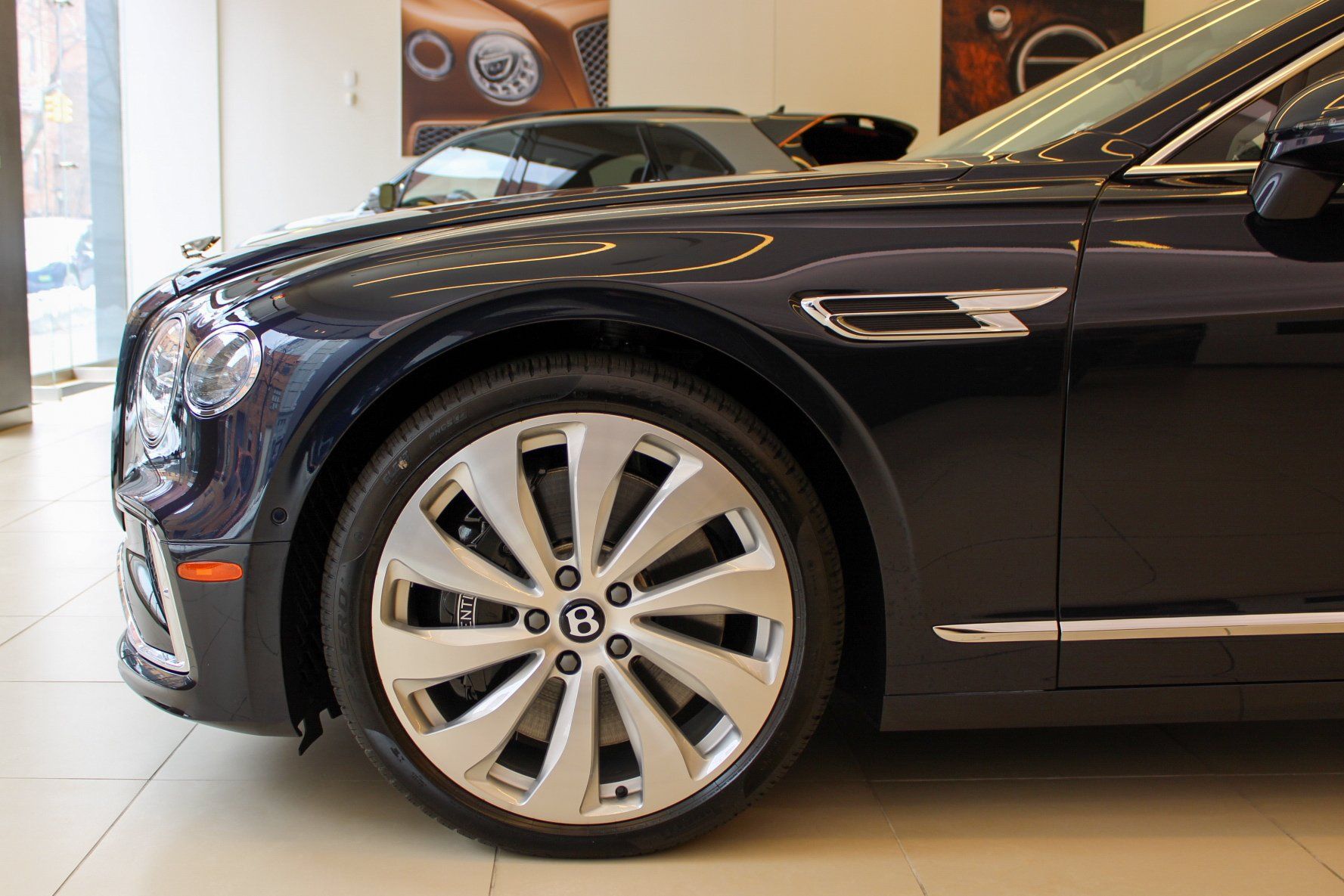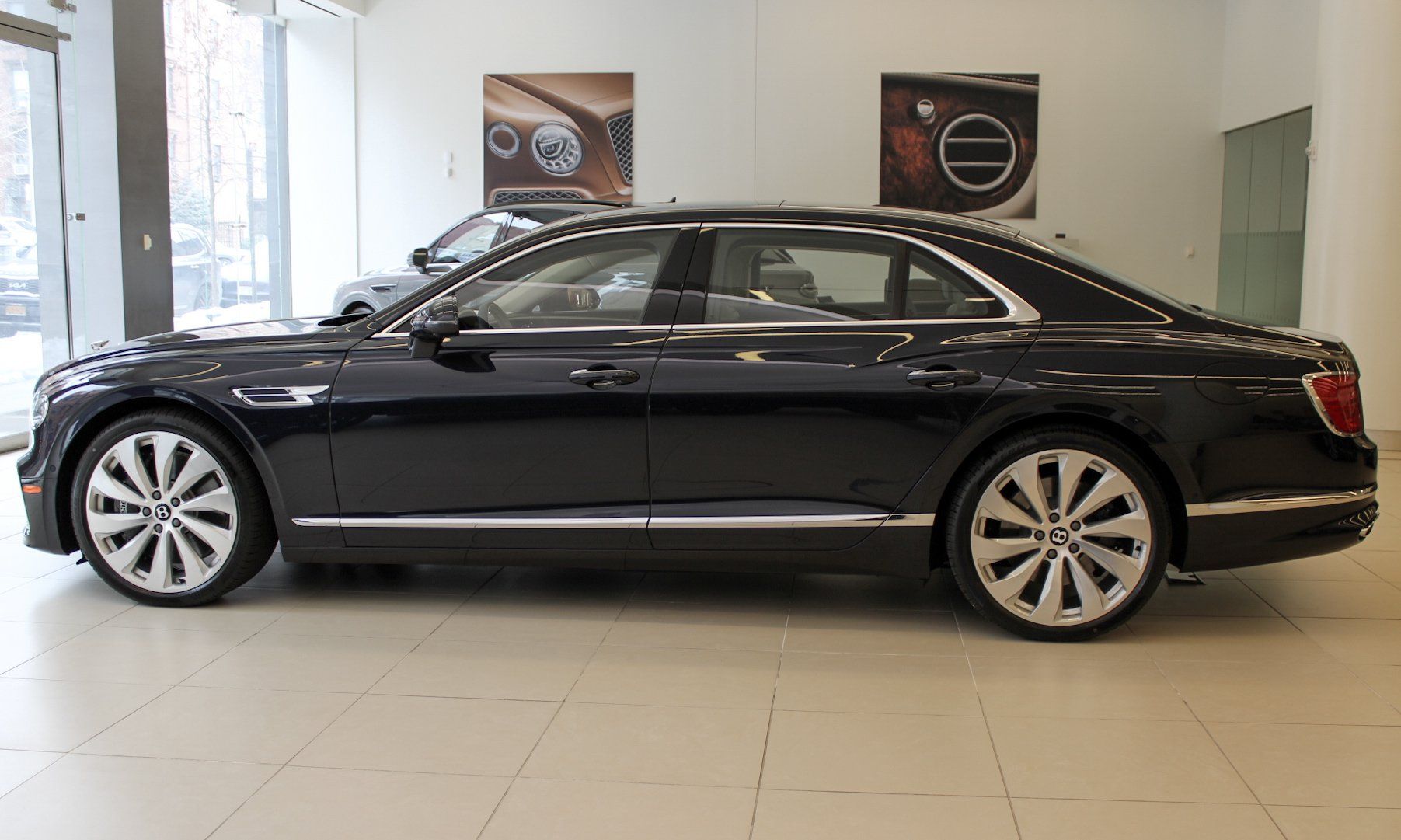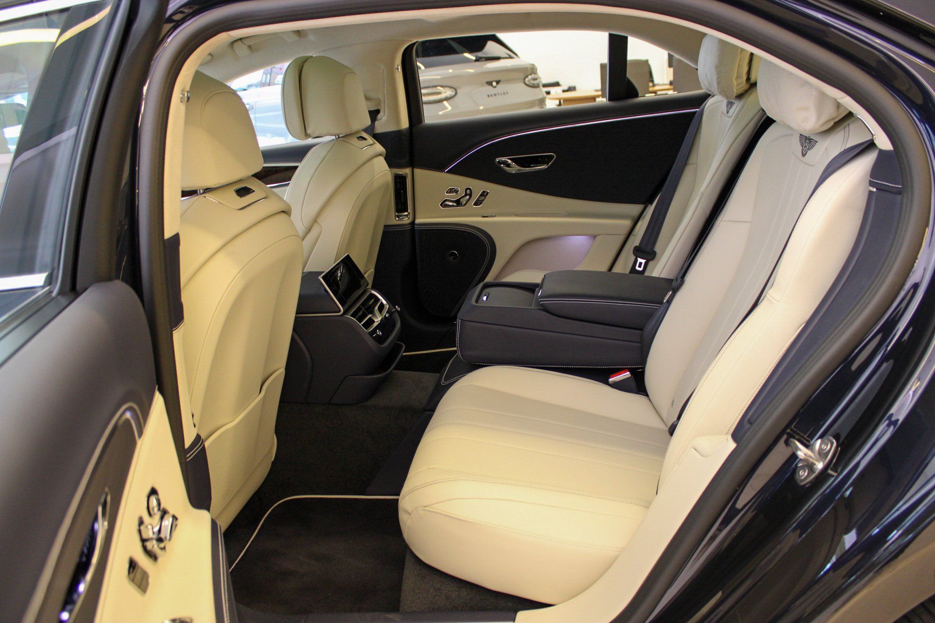 2026 Bentley Flying Spur Dark Sapphire ExteriorLinen and Imperial Blue Interior$286,440 MSRPIncudes the following Cost Options:Illuminated Flying B Radiator MascotPanoramic Glass Tilt and Slide Sunroof with Twin Blinds and Vanity MirrorsHeated, Duo-Tone, 3 Spoke, Hide Trimmed Steering WheelDeep Pile Overmats - Front and RearContrast StitchingContrast Binding to Carpet Overmats - ContrastColour SpecificationEmbroidered Bentley EmblemsSingle Finish - Dark Stained Burr WalnutContrast Seatbelts - by MullinerMood Lighting Specification22" Ten Spoke Wheel - Silver Painted and Bright Machined