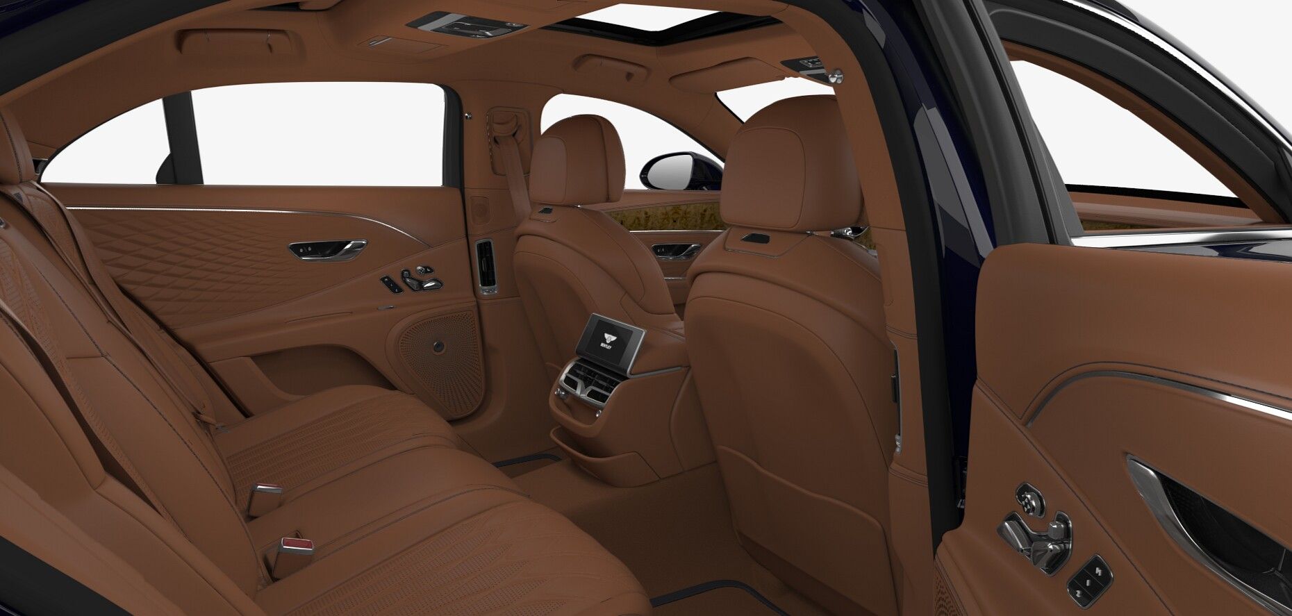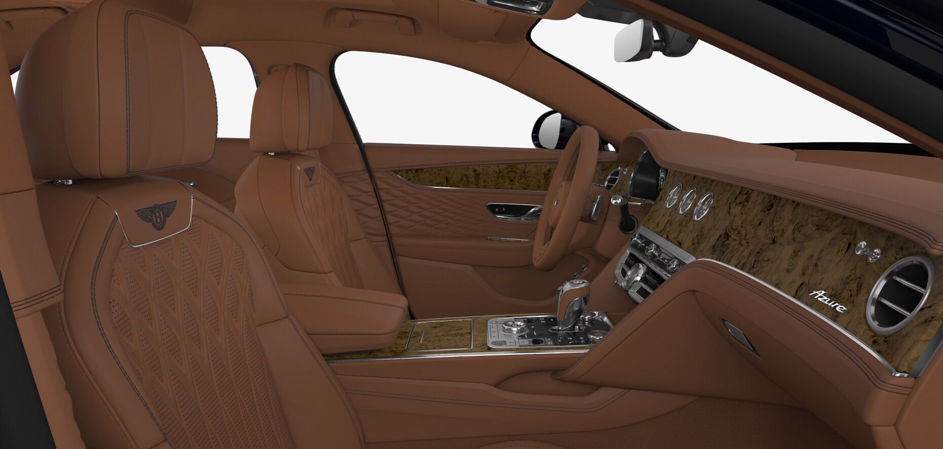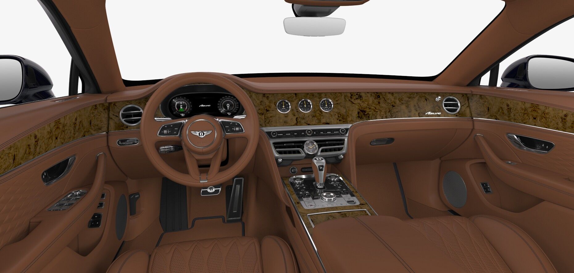 2026 Bentley Flying Spur Azure Dark Sapphire ExteriorSaddle and Imperial Blue Interior$326,185 MSRPCost options include:Bentley Wings Welcome LampsIlluminated Flying B Radiator MascotBentley Rotating DisplayContrast Binding to Carpet Overmats - Match to Contrast Stitching22" Ten Spoke Wheel - Silver Painted and Bright Machined