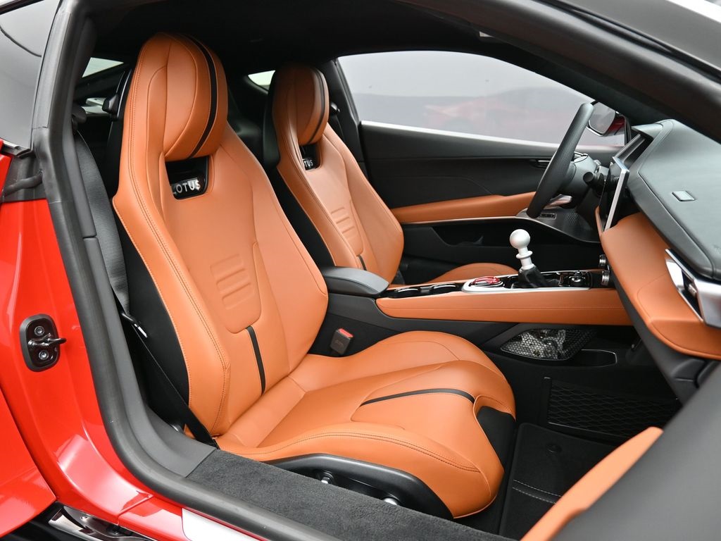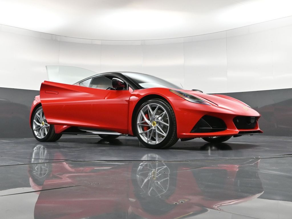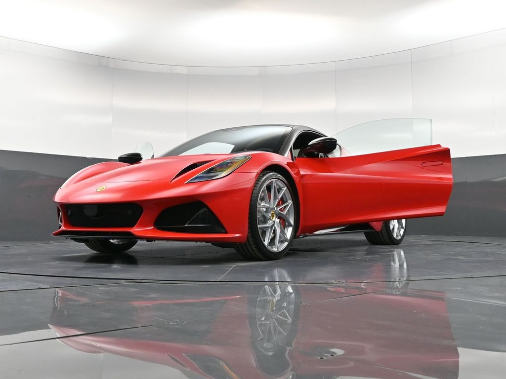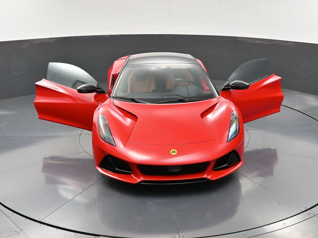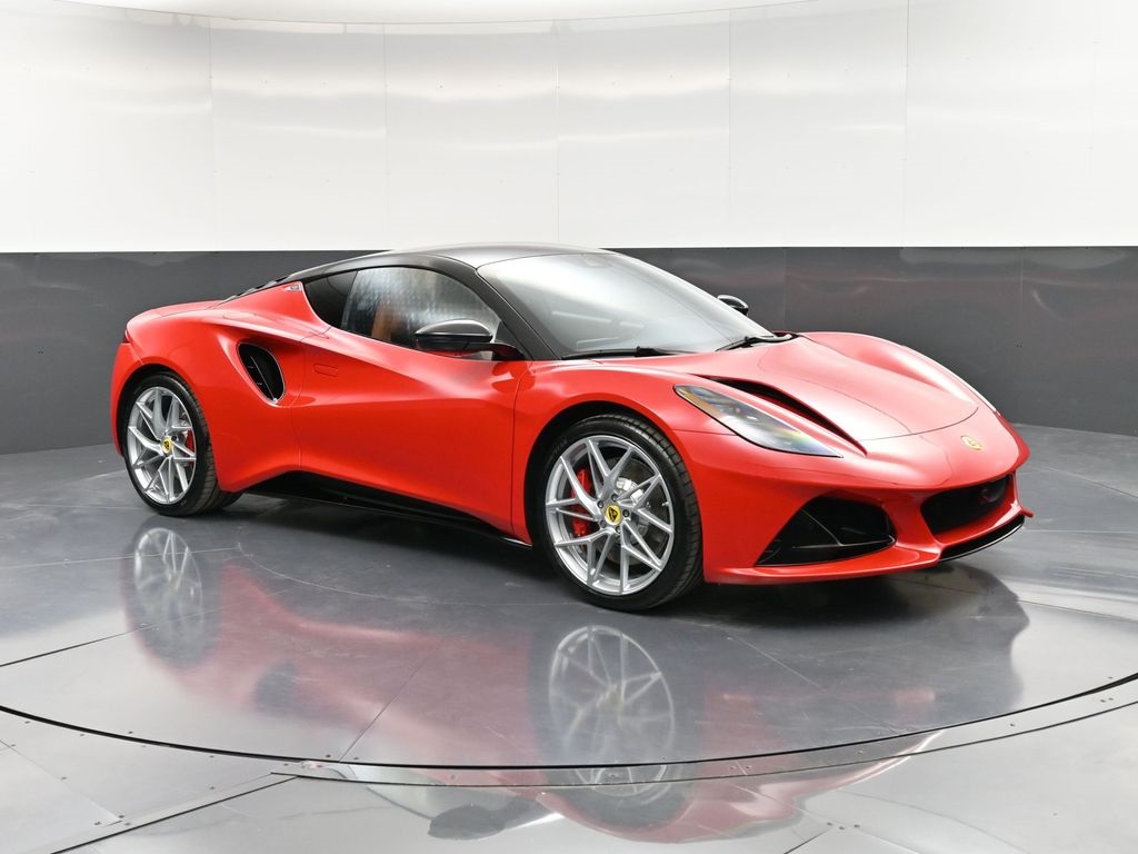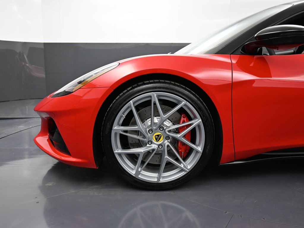 2026 Lotus Emira RWD-Vivid Red / Tan Leather-Sport Suspension-Full Black Pack-Red Brake Calipers-20 Inch Forged Ultra Lightweight Gloss Silver Prism Wheels-Alcantara Headliner-Black Seat Belt-Yellow and Black Nose Badge and Center Caps-KEF Premium Audio-Goodyear Eagle F1 SuperSportRecent Arrival!