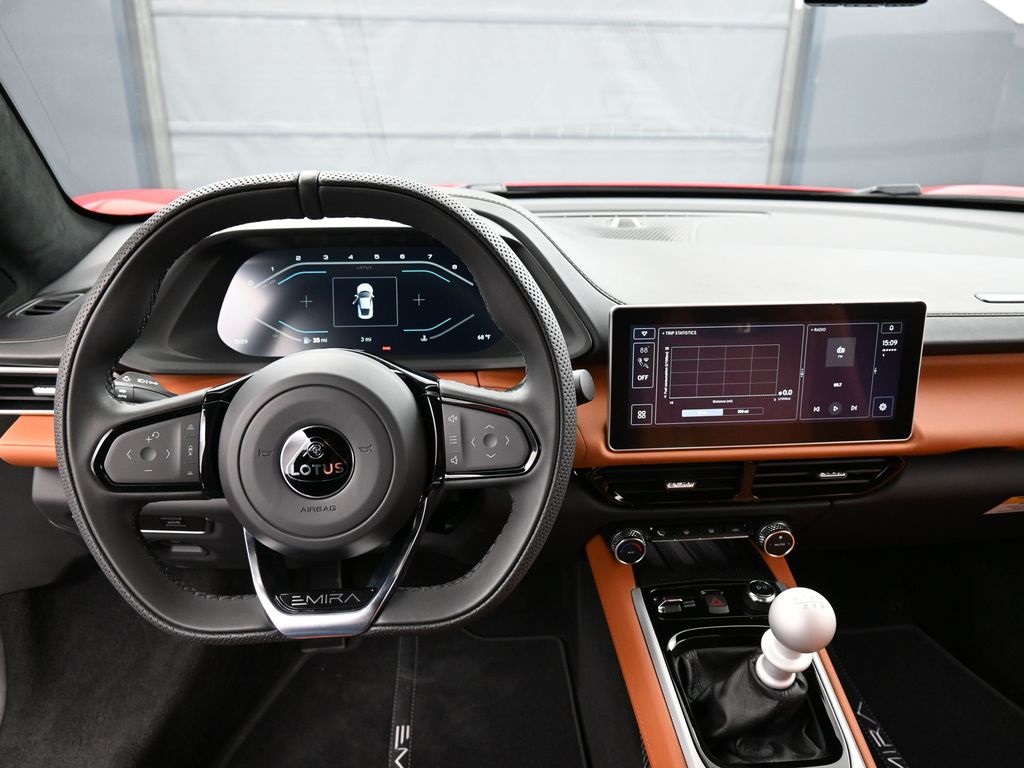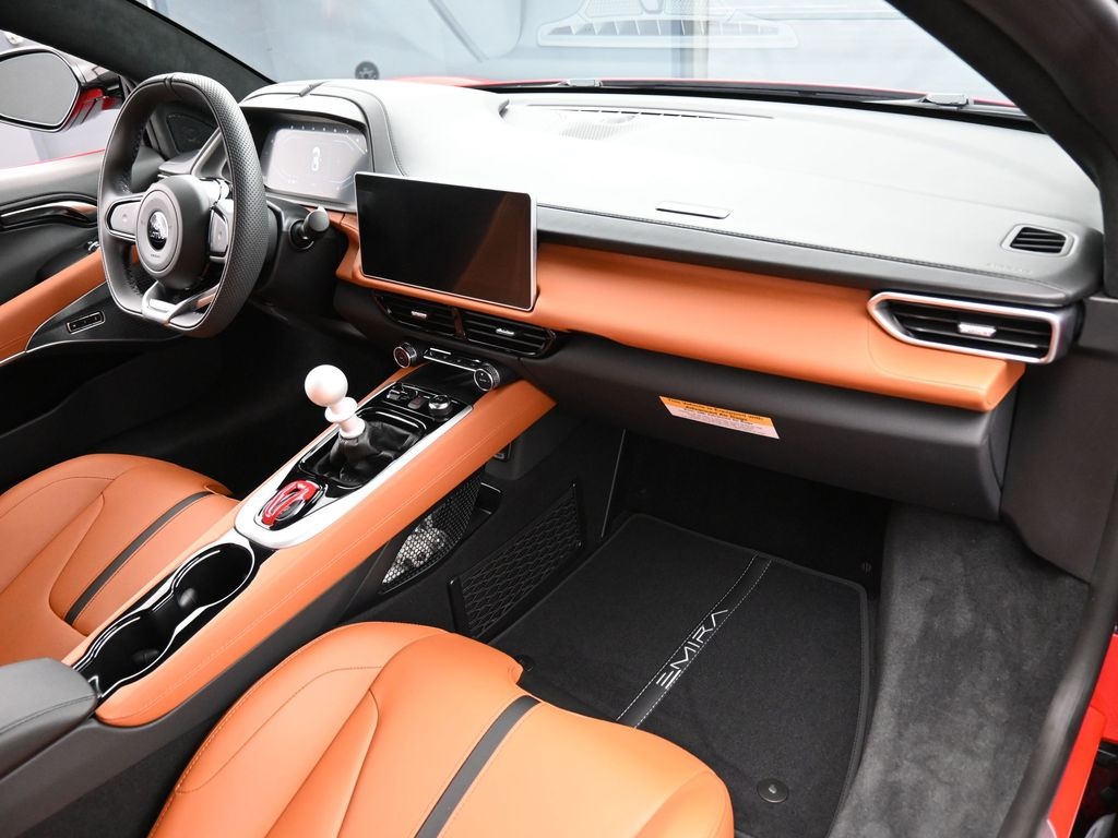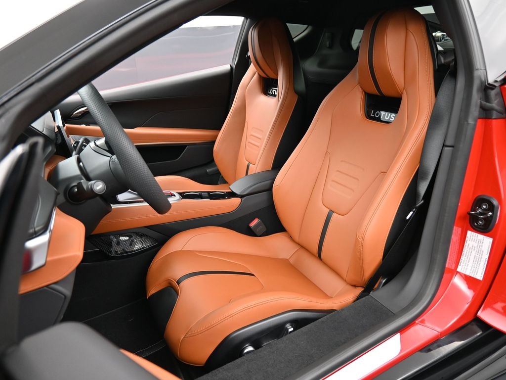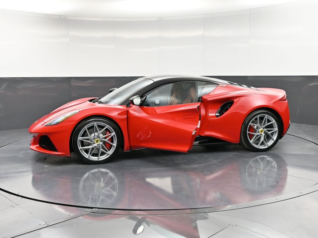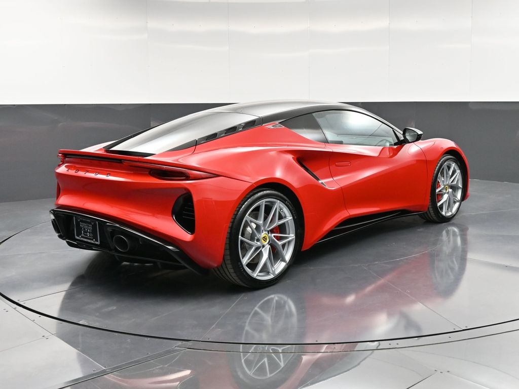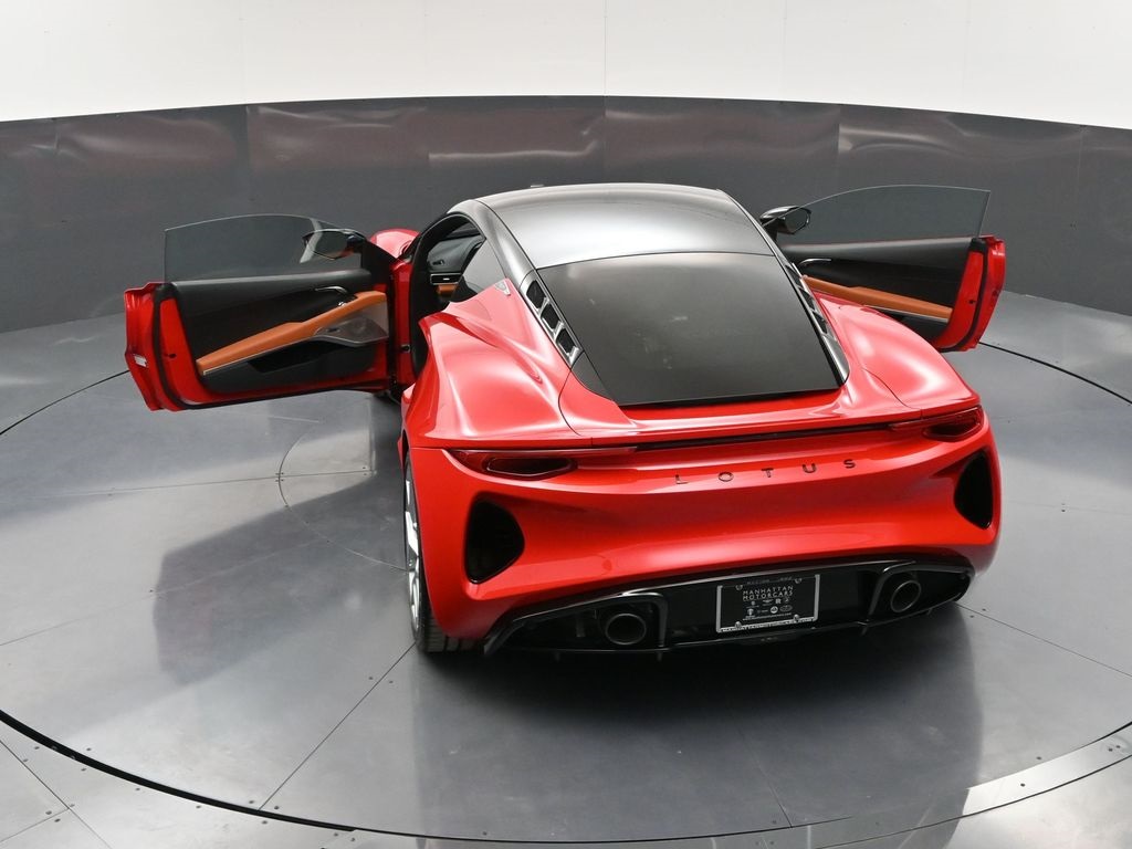 2026 Lotus Emira RWD-Vivid Red / Tan Leather-Sport Suspension-Full Black Pack-Red Brake Calipers-20 Inch Forged Ultra Lightweight Gloss Silver Prism Wheels-Alcantara Headliner-Black Seat Belt-Yellow and Black Nose Badge and Center Caps-KEF Premium Audio-Goodyear Eagle F1 SuperSportRecent Arrival!