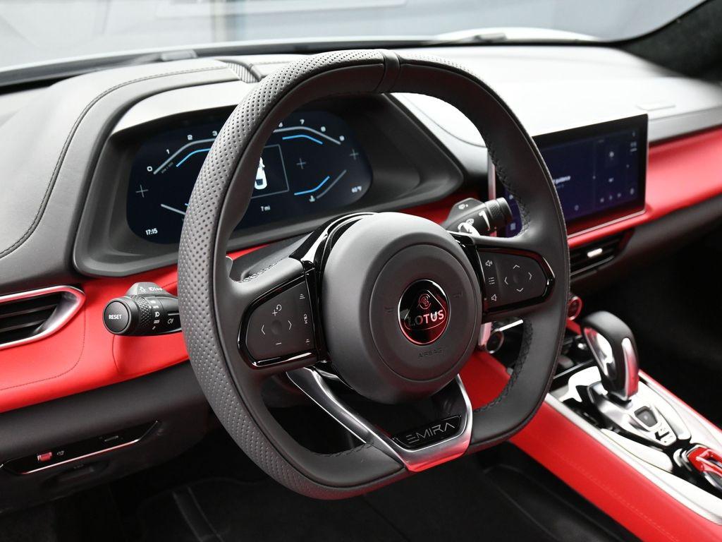 2026 Lotus Emira -Zinc Grey / Red Leather-Sport Suspension-Full Black Pack-Red Brake Calipers-20 Inch V Spoke Diamond Turned Silver and Satin Grey Wheels-Red Seat Belt-Alcantara Headliner-Premium Footwell Mats-Black and Silver Nose Badge and Center Caps-KEF Premium Audio-Goodyear Eagle F1 SuperSportRecent Arrival!